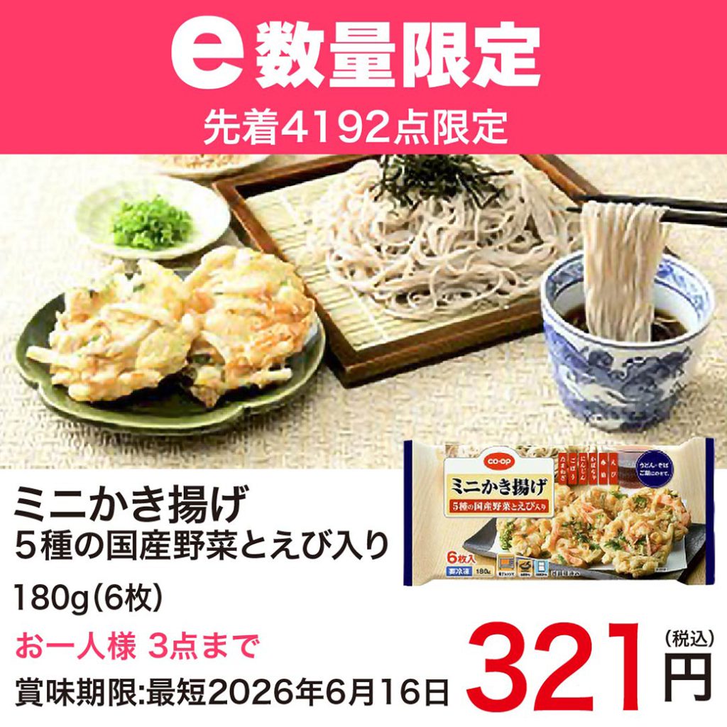 5種の国産野菜と干しえび🦐を使ったミニサイズのかき揚げです。