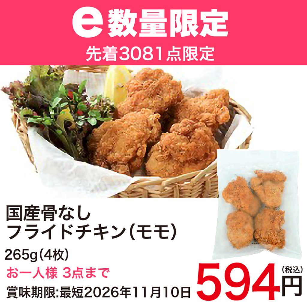 国産骨なしフライドチキン(モモ)